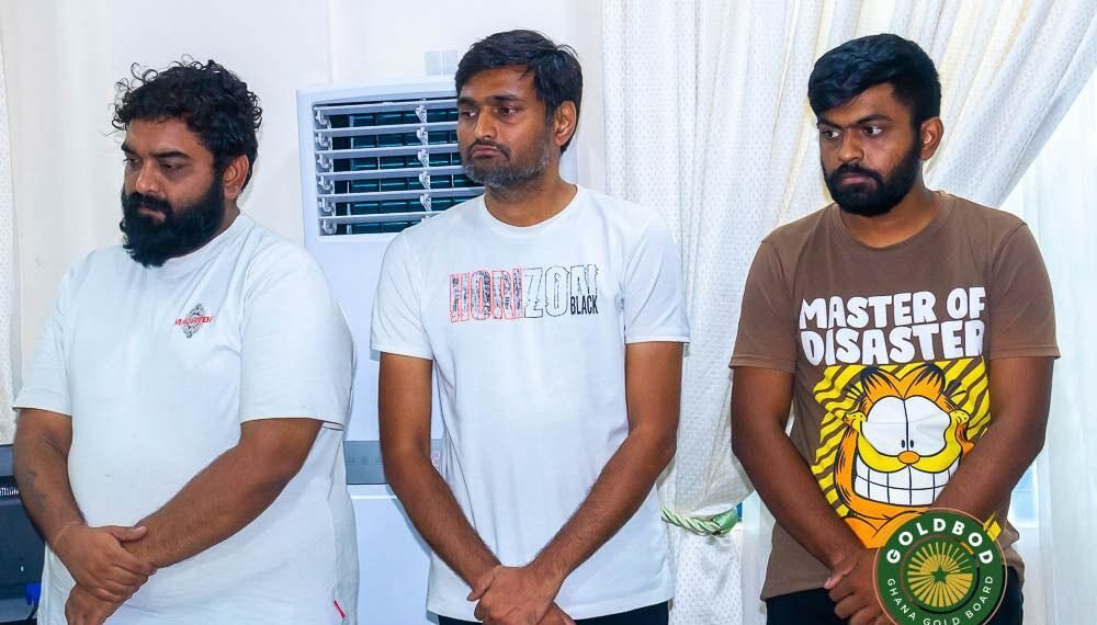 The suspects—Goutam Katriya, 35, Miraj Sarvaych, 22, and Manash Damani, 42—are Indian nationals believed to have been operating an underground gold trading hub from a private residence in Kumasi.