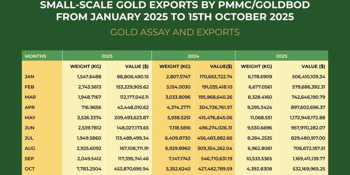 Ghana’s small-scale gold export between January and October 15, 2025