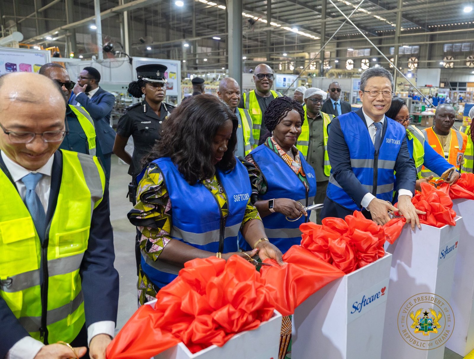 The Vice President commended the management and workers of Softcare FM Manufacturing Limited for their contribution to Ghana’s health, education, and industrial progress.