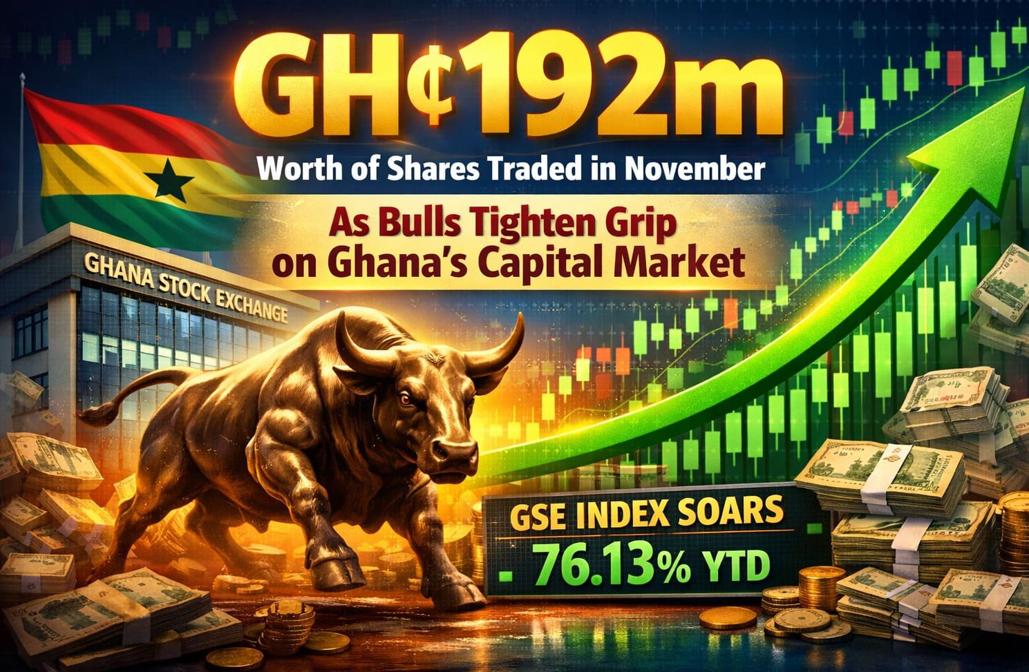 Trading activity on the Ghana Stock Exchange remained resilient in November 2025, with a total of 38.61 million shares valued at GH¢192.47 million exchanging hands.
