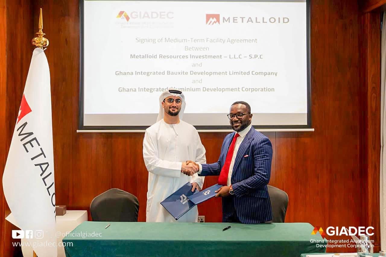 The Ghana Integrated Aluminium Development Corporation (GIADEC) has taken a major step towards advancing Ghana’s aluminium industrialisation agenda with the execution of a US$60 million facility agreement alongside Metalloid Resources Investment-LLC-S.P.C and Ghana Integrated Bauxite Development Limited Company (GIBDLC).
